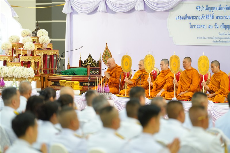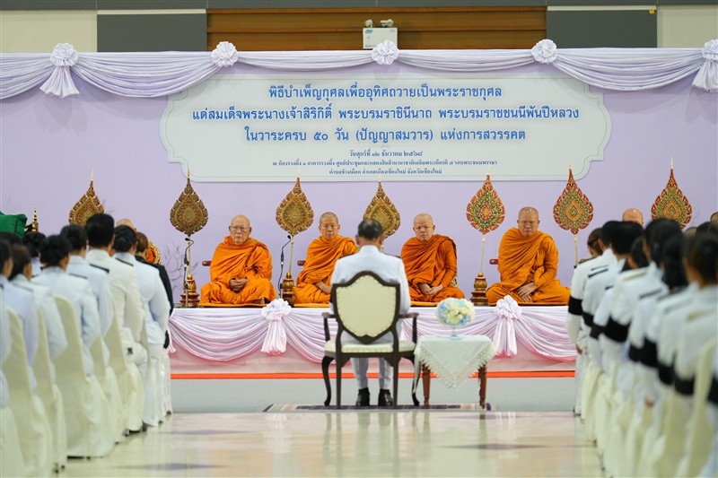 มหาวิทยาลัยแม่โจ้ นำโดย ผู้ช่วยศาสตราจารย์ ว่าที่ ร้อยเอก ดร.จิระชัย ยมเกิด ผู้ช่วยอธิการบดี และคณะผู้บริหารวิทยาลัยบริหารศาสตร์ นำโดย อาจารย์ ดร.พิชญ์ จิตต์ภักดี คณบดีวิทยาลัยบริหารศาสตร์ อาจารย์ ดร.ศิริโสภา สันติทฤษฎีกร รองคณบดี ฝ่ายวิชาการและพัฒนาคุณภาพ นางอรทัย ใจป้อ ผู้อำนวยการสำนักงานคณบดี นายภิมุข รอยไทย หัวหน้างานบริหารและธุรการ และ นางสาวภัคสุณีย์ ดวงงา เจ้าหน้าที่บริหารงานทั่วไปชำนาญการพิเศษ ได้เข้าร่วมพิธีบำเพ็ญกุศลเพื่ออุทิศถวายเป็นพระราชกุศลแด่สมเด็จพระนางเจ้าสิริกิติ์ พระบรมราชินีนาถ พระบรมราชชนนีพันปีหลวง ในวาระครบ 50 วัน (ปัญญาสมวาร) แห่งการสวรรคต ในวันศุกร์ ที่ 12 ธันวาคม 2568 ณ ห้องรวงผึ้ง 1 อาคารรวงผึ้ง ศูนย์ประชุมและแสดงสินค้านานาชาติเฉลิมพระเกียรติ 7 รอบพระชนมพรรษา ตำบล ช้างเผือก อำเภอเมืองเชียงใหม่ จังหวัดเชียงใหม่